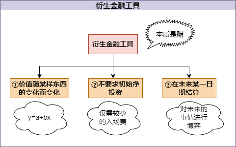 在这个例子中,我和房东签订的合约就是“衍生金融工具”,赌的是未来的房价,合约的价值会随着房价的变化而变化,而我刚开始只需要付出30万就能参与这场房价的博弈,最终的博弈结果会在一年后得知。
