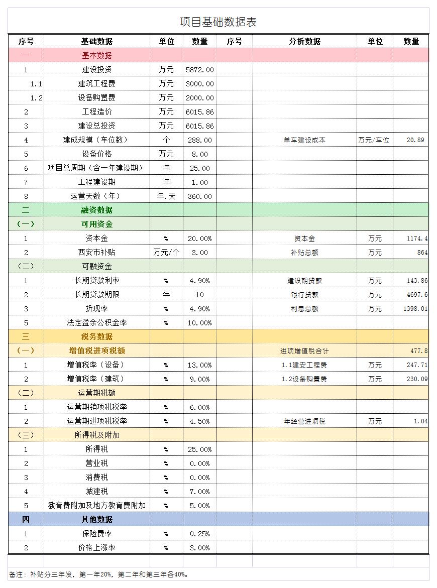 停车场项目财务分析excel测算,带公式,可视化。(现金流,回收期,IRR,NPV)