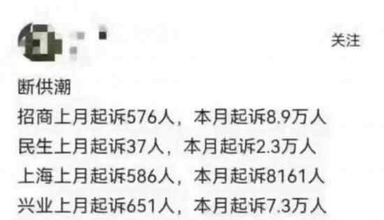 其实受各种事件影响,现在的金融环境越来越不景气,不光是A股市场稀里哗啦,其他行业都面临挑战,房产地产就是活生生的例子,包括最近的断供潮,招商银行上月起诉576人,本月起诉8.9万人,其他银行的情况也大同小异,放在下面图里。