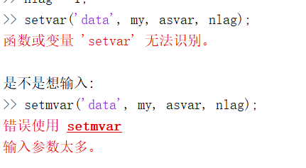 请检查你的代码并确保使用的命令是 MATLAB 所支持的。如果 `setvar` 是来自某个特定工具箱或者你自己的自定义函数,请确保该工具箱已正确加载,或函数文件在路径中。