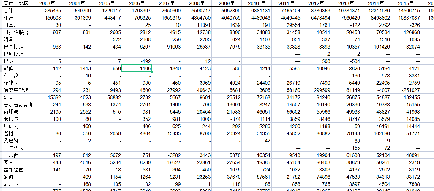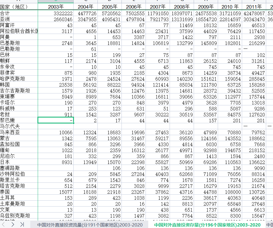 1.对外直接投资存流量(分191个国家地区)2003-2020注:2003-2006各年流量为非金融类直接投资流量。