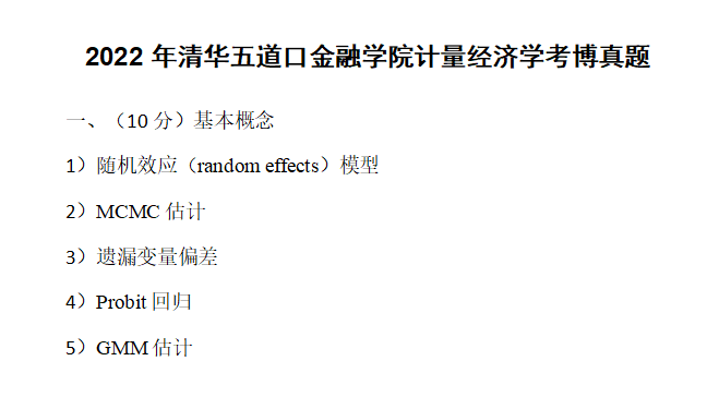 常老师工作室 发表于 2022-4-22 15:17 清华五道口金融学院计量经济学2022年考博真题+历届回忆+2022真题解析(六月份出,需要提前联系我)