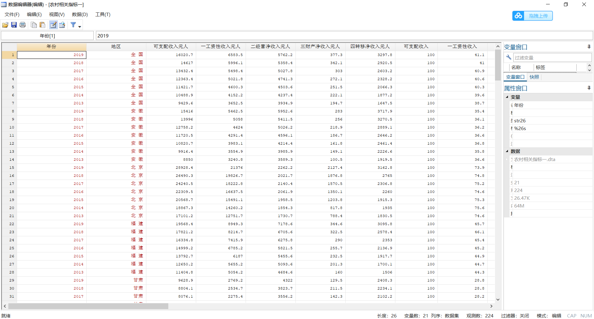 省级面板数据:农村可支配收入、消费支出等 stata版本