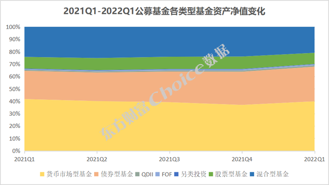 分类型来看,货币市场型基金10.09万亿,较去年四季度末增长5590.9亿元,债券型基金7.06万亿,增长1518.7亿元;混合型基金资产净值减少规模最多,减少高达8797.41亿元。