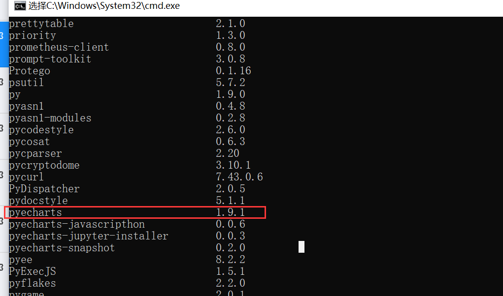 假设你当前的版本是V0.5,如果想升级到V1,那就非常简单了,只需要操作一步,在命令行中输入升级命令:pip install -U pyecharts即可。