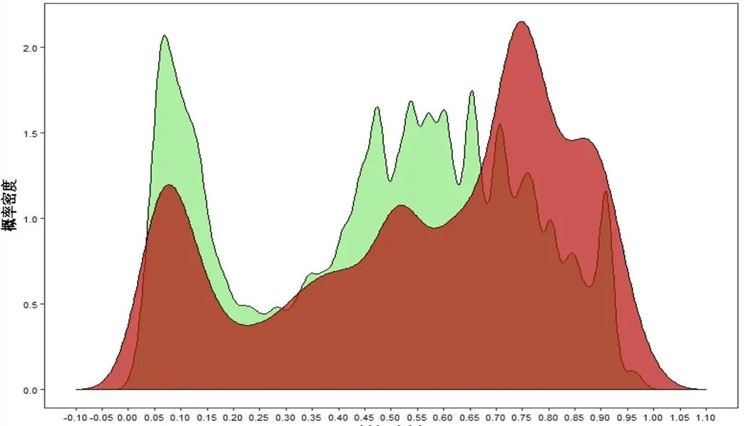 密度图特别适合对比黑白样本同样的特征的分布问题