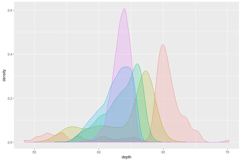 qplot(depth,data = dsmall,geom = c('density'),
