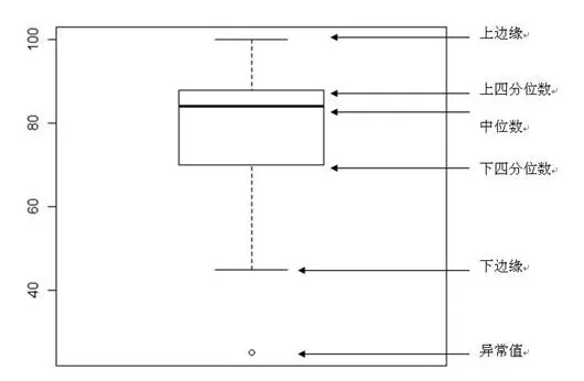 **特别说明:箱盒图里面的上边缘值并非最大值,下边缘值也不是最小值。**如果数据有存在离群点即异常值,他们超出最大或者最小观察值,此时将离群点以“圆点”形式进行展示。