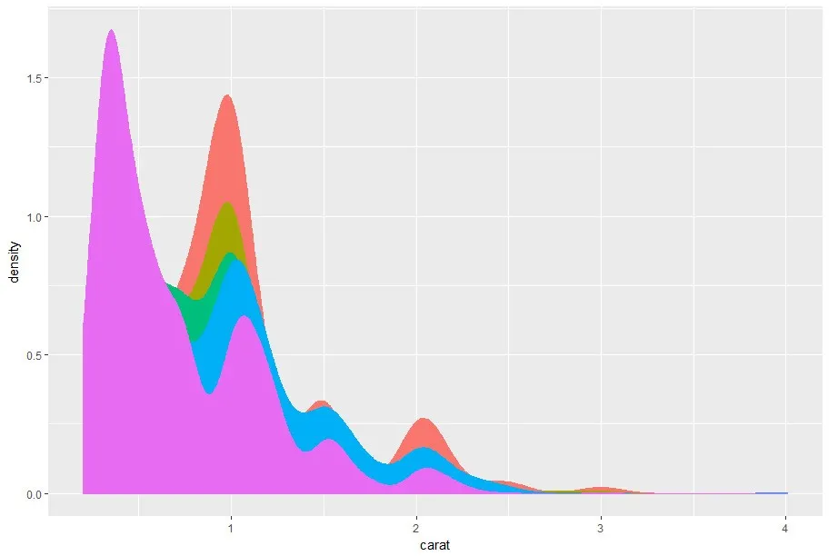 qplot(carat,data = dsmall,geom = c('density'),