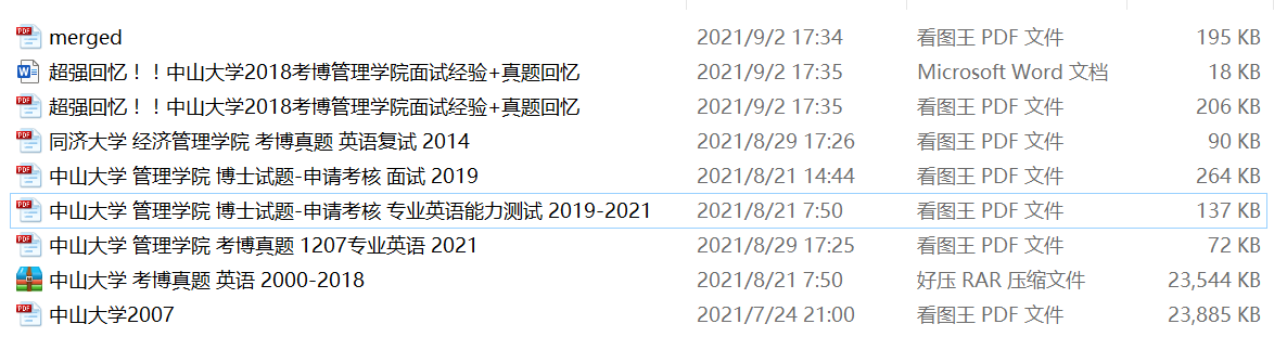 现将资料整理好回馈各位,整个资料包(2019-2021笔试、2021笔试共两个版本、2018-2019面试、2018及以前统考英语)