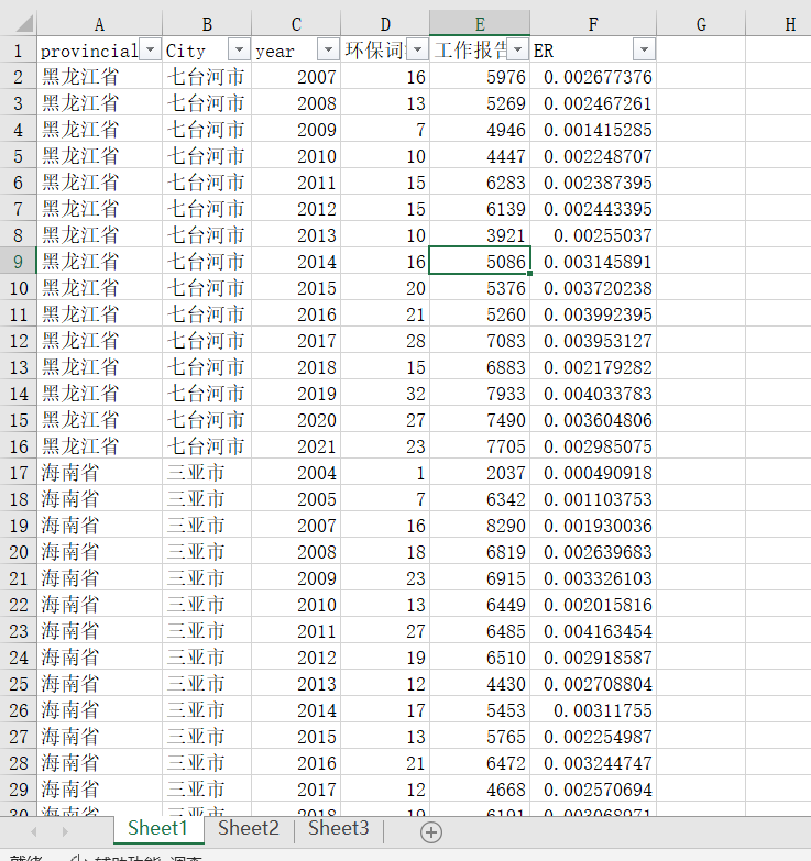 用途:采用地方政府工作报告中与“环保”一词相关词汇出现的词频占报告全文字数的比重作为环境治理的代理变量。