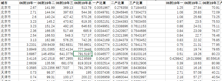 数据包括:数据含计算公式、原始数据有:一产从业人员、二产从业人员、三产从业人员、总从业人员、一产比重、二产比重、三产比重、一产占比、二产占比、三产占比、一产产值占比/一产从业人员占比、二产产值占比/二产从业人员占比、三产产值占比/三产从业人员占比、一产对数、二产对数、三产对数、合理化水平、高级化指数。