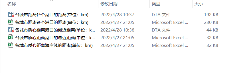 根据这种方法,我们测算了省份、地级市、县级市、港口、海岸线、双边国家之间的地理距离