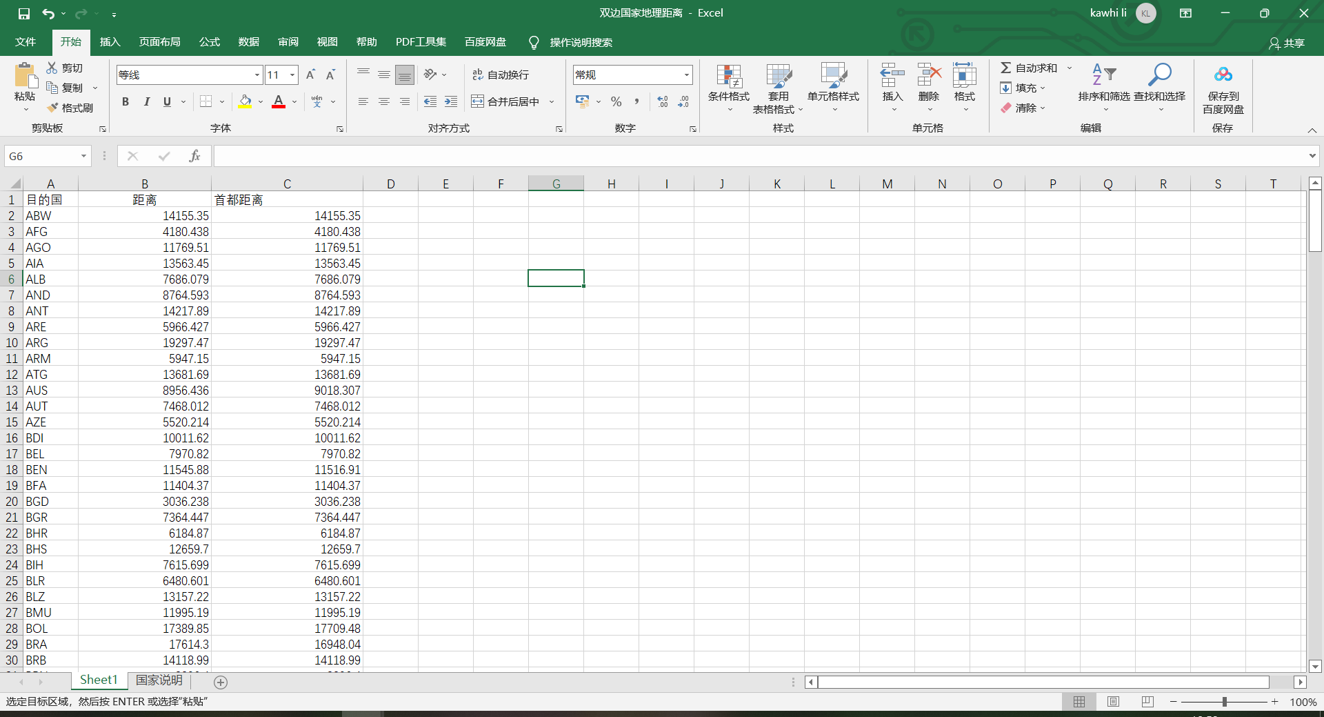 附件五:中国与其他国家之间的双边国家地理距离