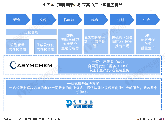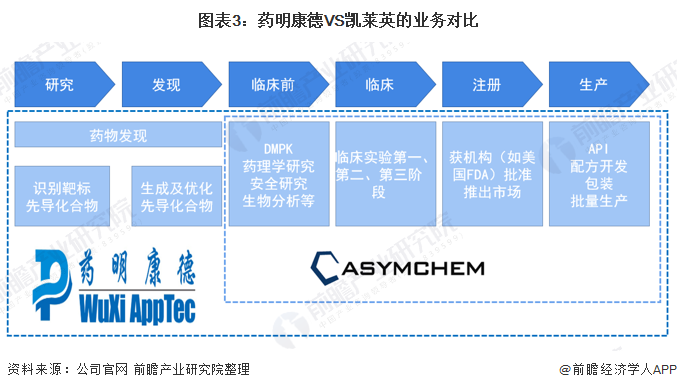 经过多年的发展,药明康德已经完成了从药物发现到商业化生产的业务布局;而凯莱英则是提供覆盖新药从临床早期阶段到商业化的CMC服务,为制药企业制备各类新药及已上市药物的关键中间体、高级原料药、创新制剂等。
