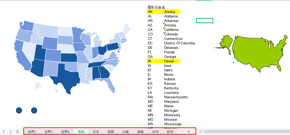 Excel可编辑可分色的中国地图(省、市)、世界地图模板,可随意拖动,可复制,可粘贴,可随意编辑颜色