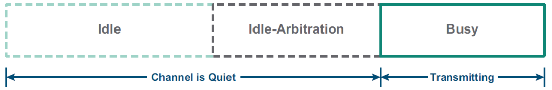 当CW倒计时结束时,如果设备发现信道正在占用,设备便自动进入下一个仲裁期。如果设备发现信道处于空闲状态,便开始占用信道,发送数据。