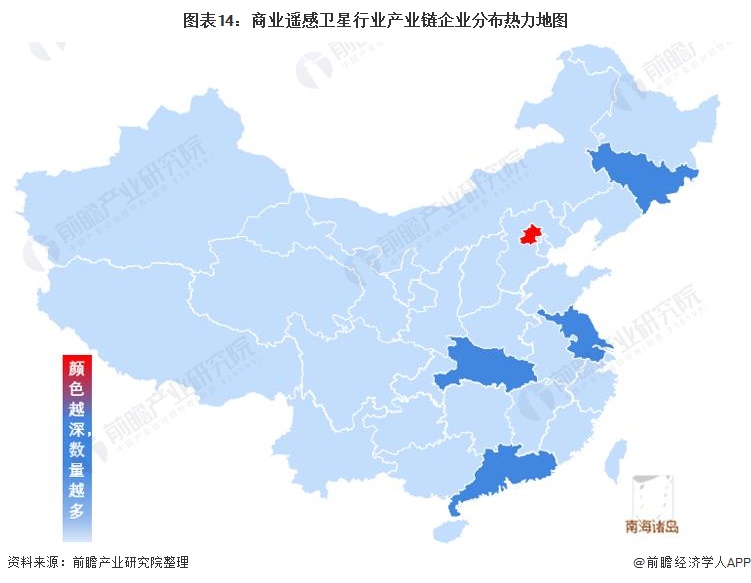 从我国商业遥感卫星产业企业区域分布情况来看,区域集中度极高,大部分企业集中在北京地区。其他企业分布较为分散,主要在广东、吉林、湖北、江苏等地区。