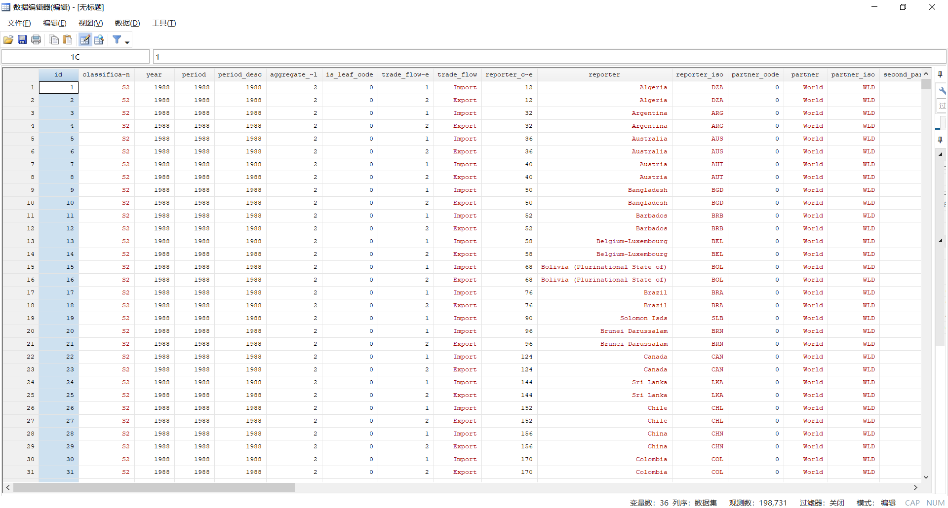 世界各国农产品进出口贸易总额数据(1988-2019年).dta