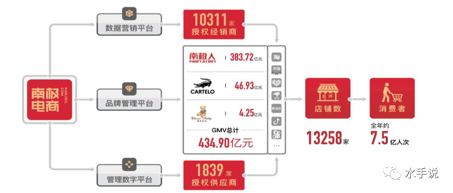 打开京东、淘宝或者拼多多,搜寻品类名——袜子、内衣……会发现大片的南极人店铺,南极人品牌无处不在,但此品牌的拥有者南极电商旗下却没有一家工厂、没有一个店铺。2008年南极电商业务转型后主要做“品牌授权”的生意,毛利一度超过茅台。