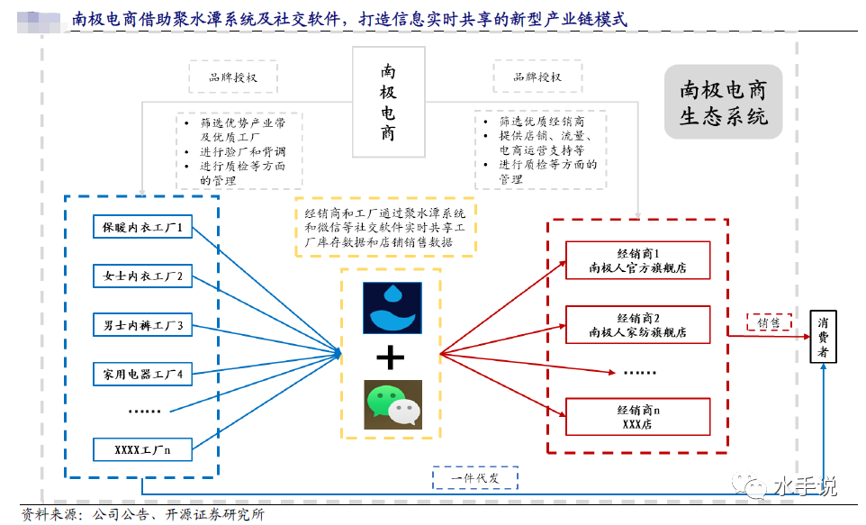 围绕这些供应链资源,南极电商持续打造的聚水潭系统很具“产业互联网”的特质,将来一旦开发成功,将成为C2M的强大底盘中台。