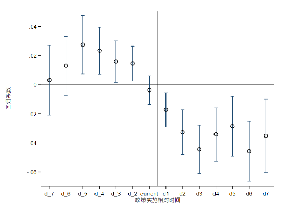 zhuhongshao6 发表于 2022-5-11 15:24 最好政策前的系数都在0附近,且波动不大。政策后是明显下降(说明你的政策使得你的y减少了)。可以考虑做去 ...