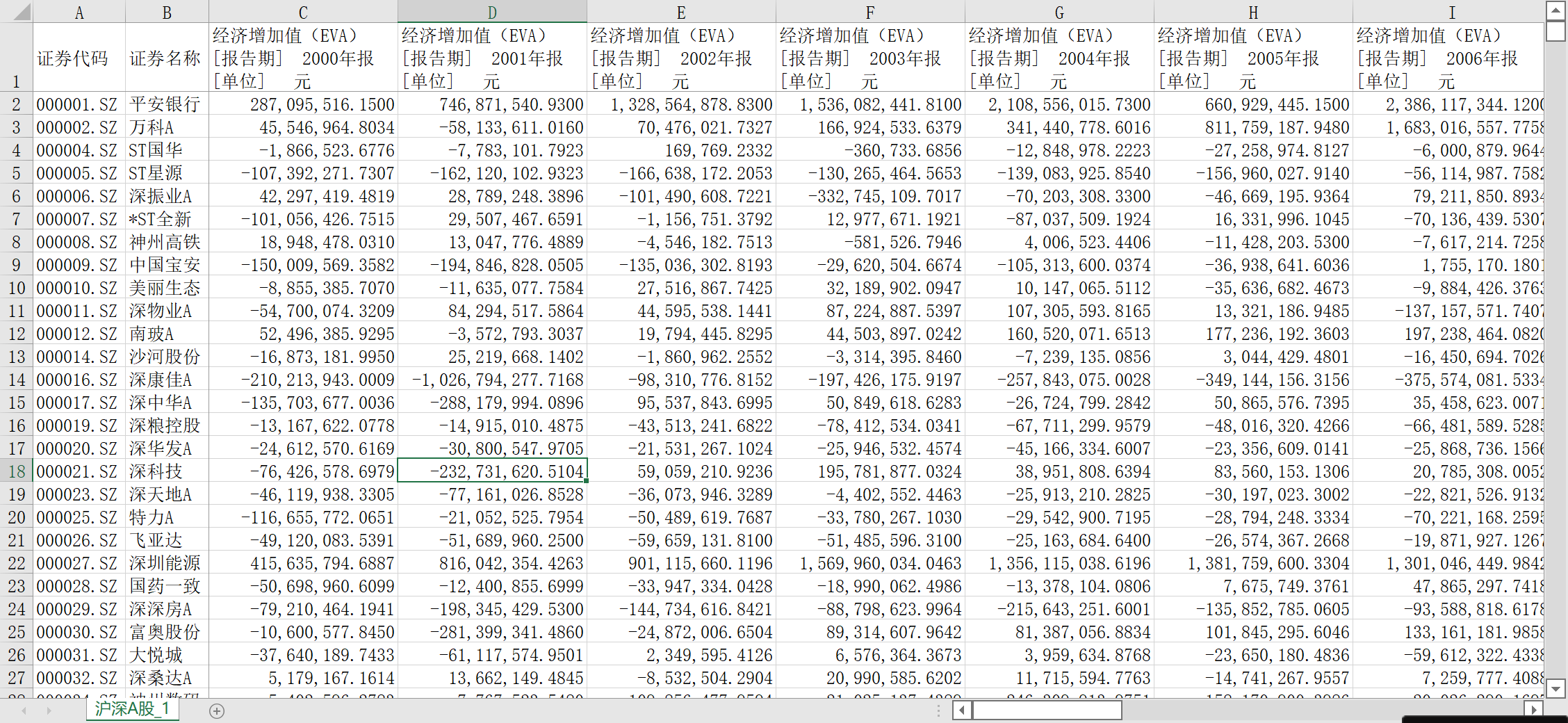 沪深A股EVA经济增加值 2000-2021年.xlsx