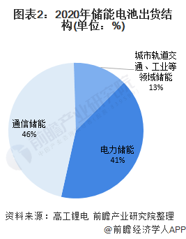高工产研锂电研究所(GGII)初步统计,2020年,中国储能锂电池出货量16.2Gwh,其中电力储能6.6Gwh,占比41%,通信储能7.4Gwh,占比46%,其他包括城市轨道交通、工业等领域用储能锂电池,占比13%。