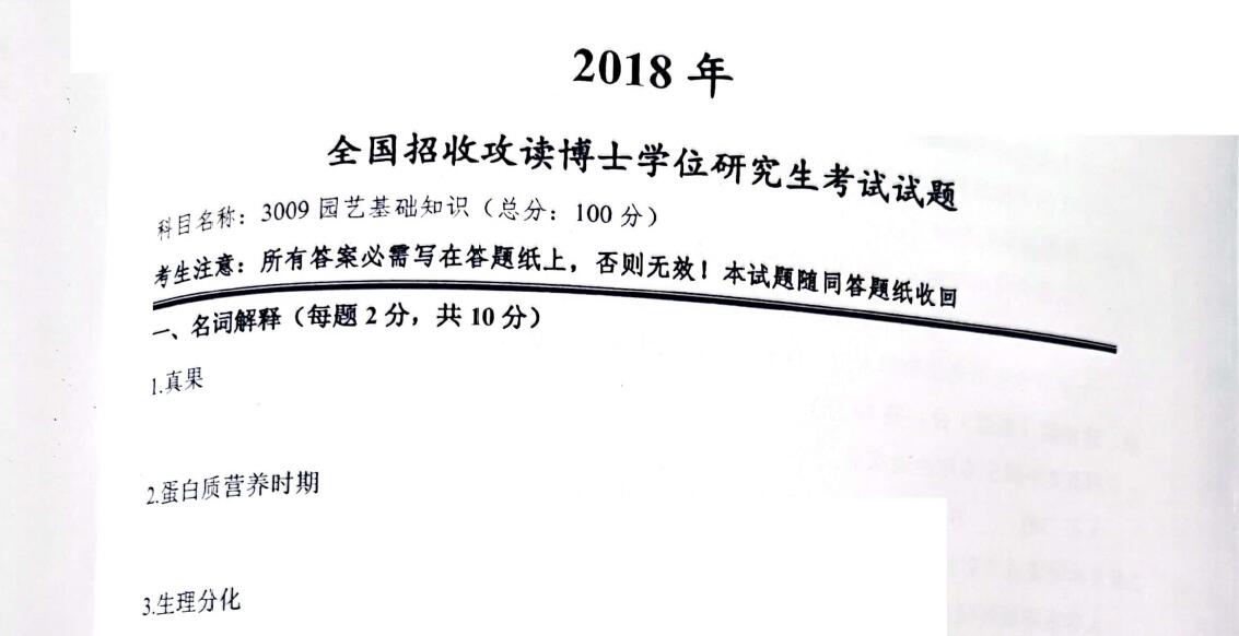 2018年四川农业大学3009园艺基础知识考博真题博士