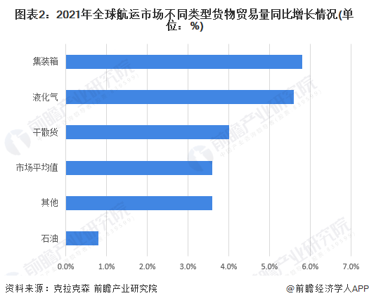 从贸易量增速来看,2021年,集装箱运输是整个海运市场增长最快的细分领域,增幅达到5.8%,高于海运市场整体增速2.2个百分点。