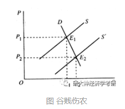 然而在现实生活中的收益应该是“利润R×数量E”,而非“价格P×数量E”,使用“利润R×数量E”来表示收益后,丰收的年景会导致成本降低,从而利润R增加,此时总收益R×E2与R×E1大小不定,并不一定就导致伤农啊。