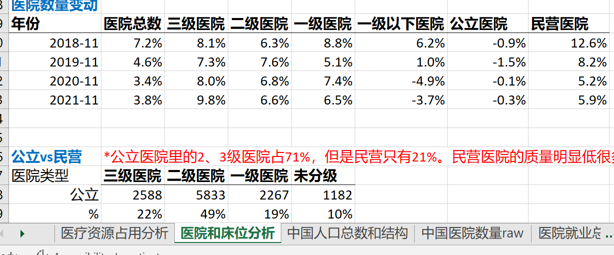 包括了医院数量和结构分析,床位资源分析。Excel保存原有数据,例如各国医院数据,医疗从业人员数据等,可以自行继续深度研究。