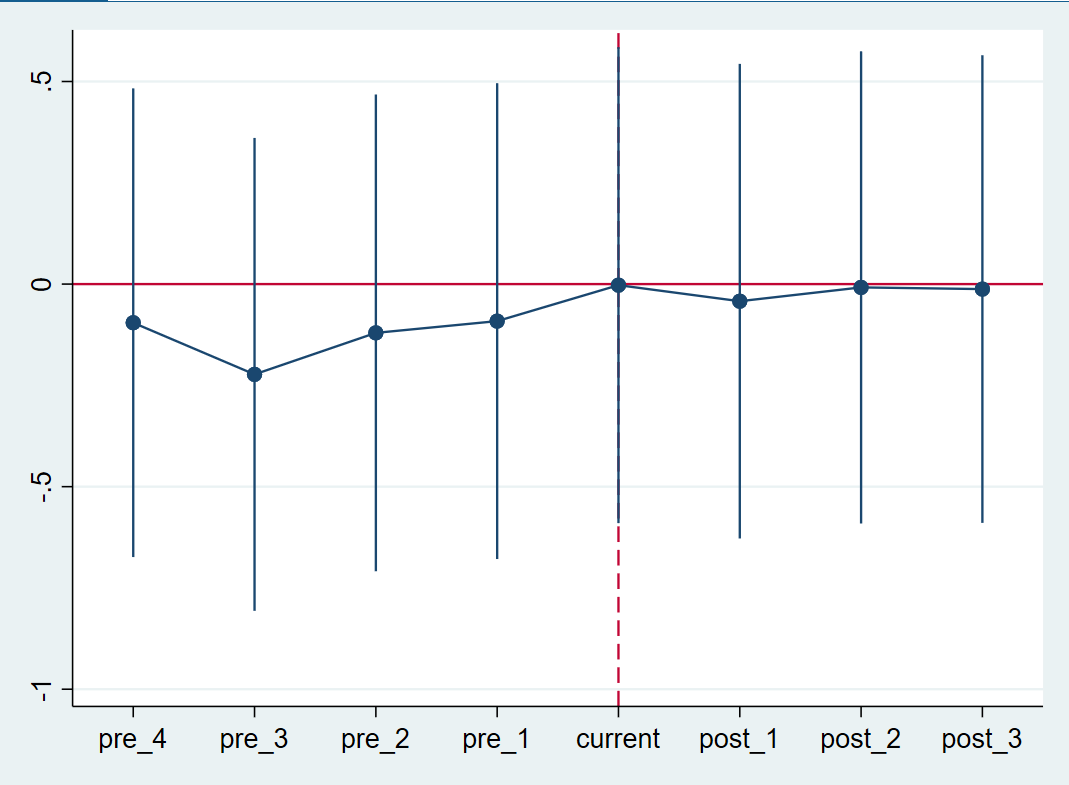 白衣茗04 发表于 2022-5-13 19:00 请问这个平行趋势结果图可以看出结果怎么样,算是通过平行趋势检验吗?谢谢各位老师们!!!