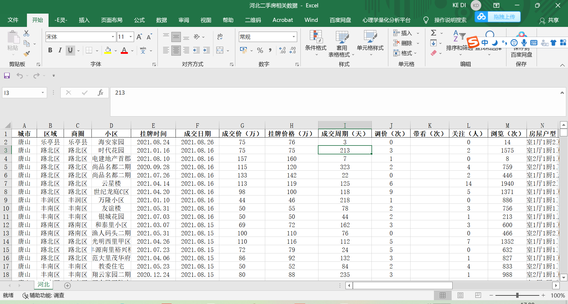 上海、河北、北京的二手房交易数据,河北省数据区间跨度是2014年6月-2021年8月,上海数据区间跨度是2012年1月到2021年2月,北京区间跨度是2001年1月1到2021年1月9日指标大致是下面的内容: