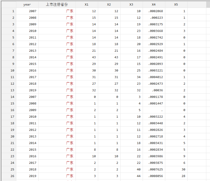 有没有大神帮帮我,如何用stata 进行循环条件求和?就是控制年份和省份对x1 x2 x3 x4 x5 求和?比如说我想对2009年所有属于注册地为广东省的变量 x1 x2 x3 x4 x5 分别求和,然后再进行2010-2019年的,求完后再求其他省份。