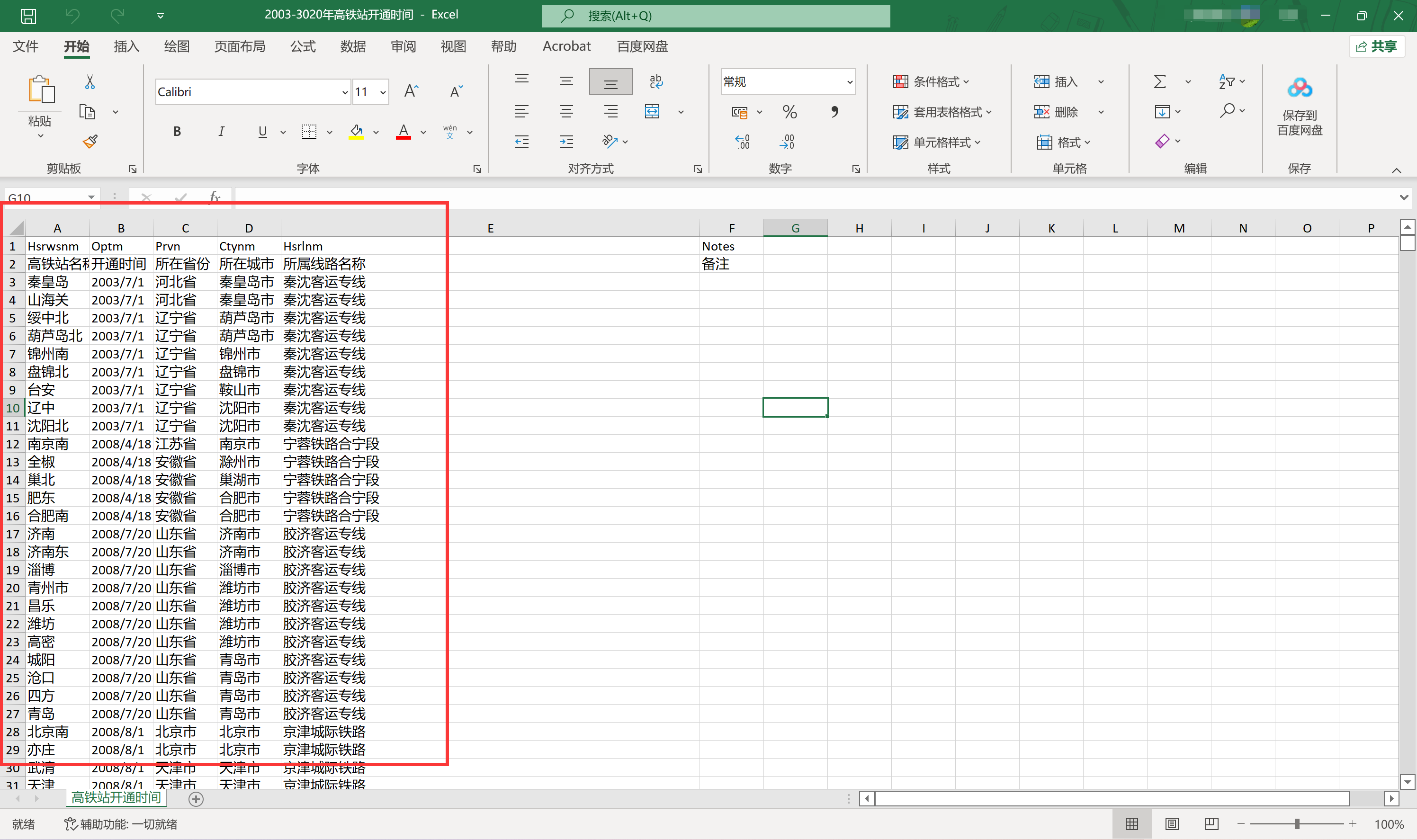 最新·2003-2020年全国高铁线路、列车、开通时间面板数据