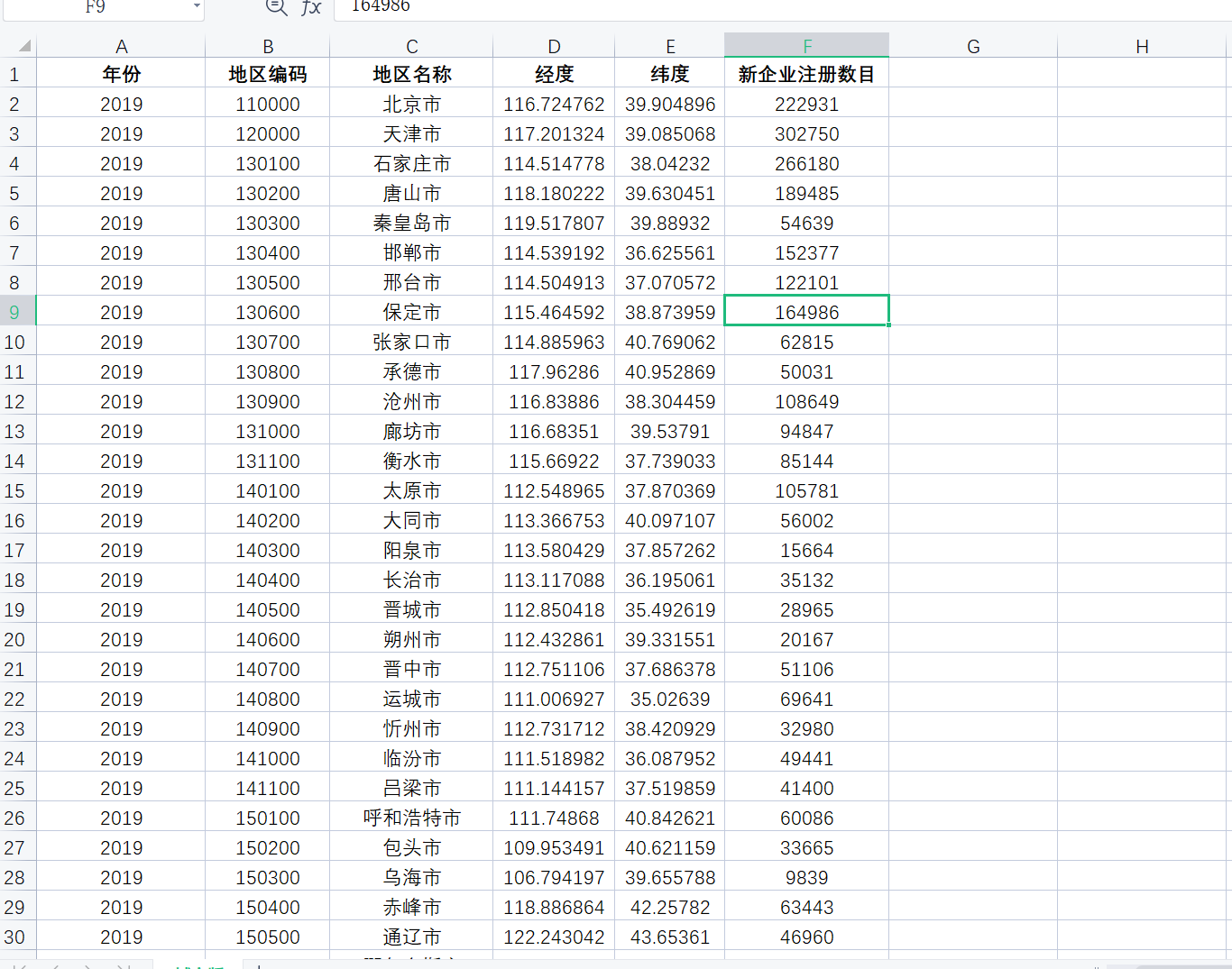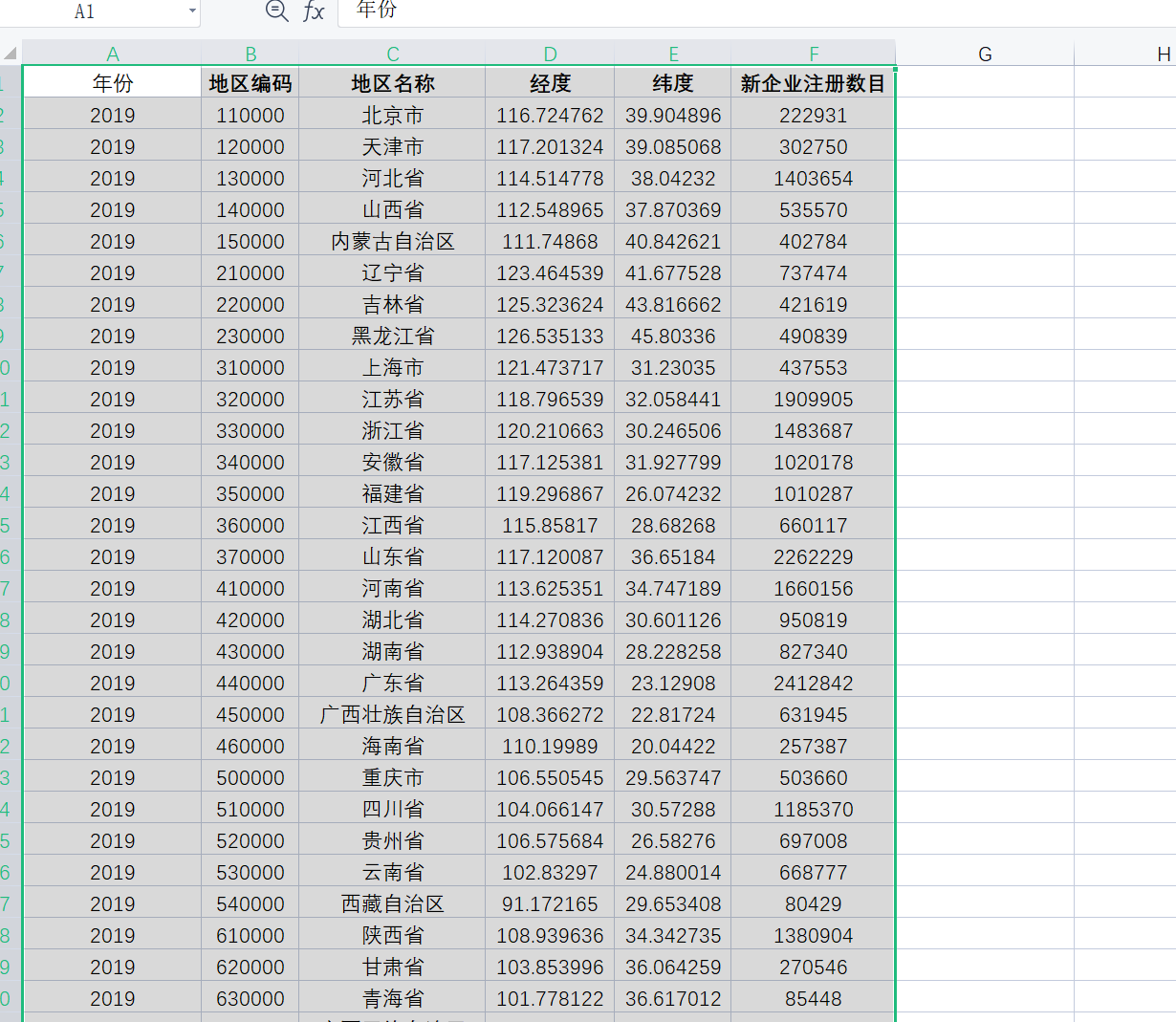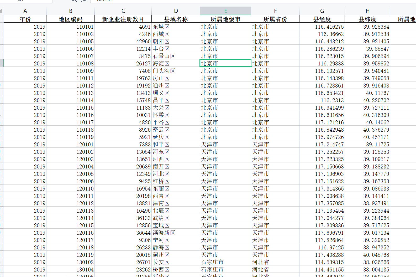 数据名称:企业注册数据(涵盖所有省、市、县)2000——2019