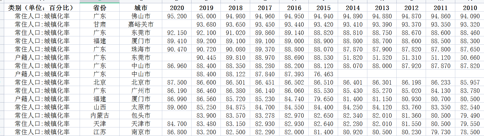 2001-2020全国31个省城镇化率、2003-2019年280个地级市城镇化率数据