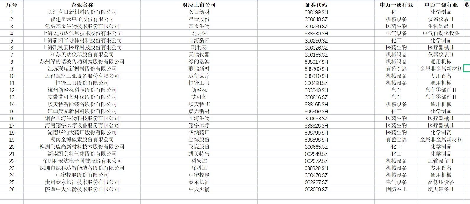一、专精特新企业名单汇总