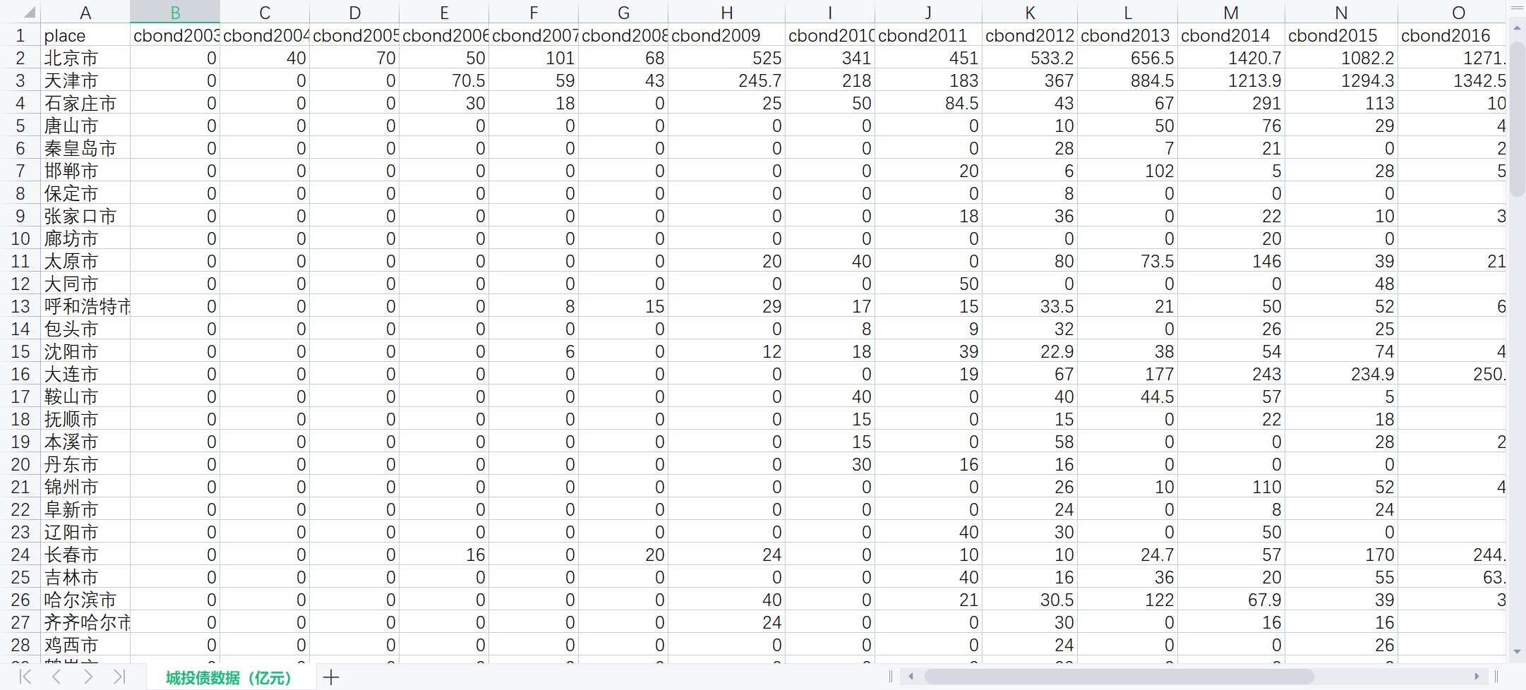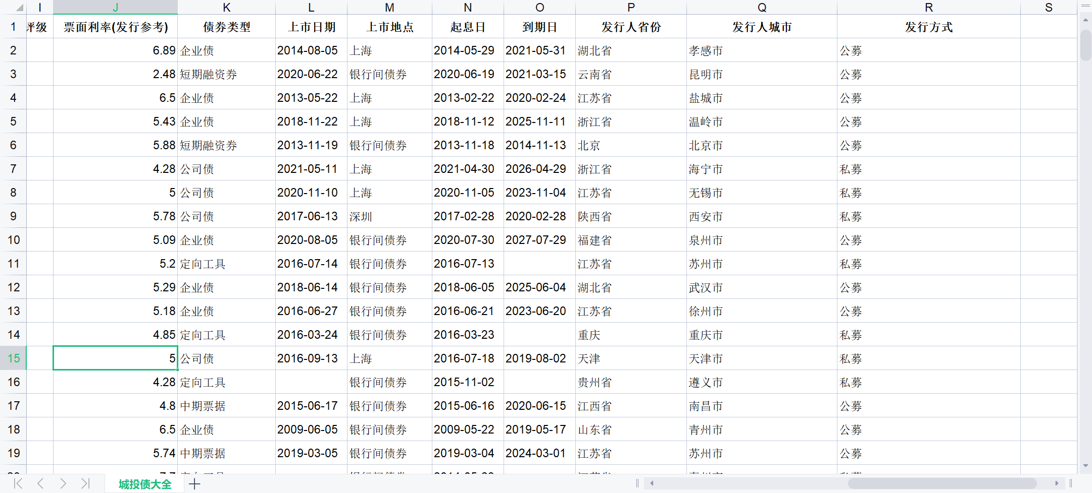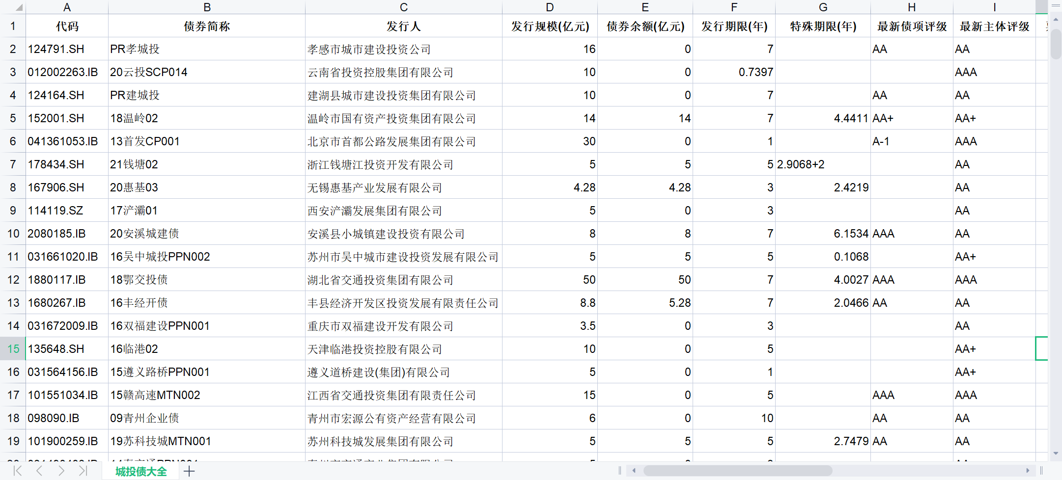 数据名称:全国/地级市-城投债详细信息及汇总数据