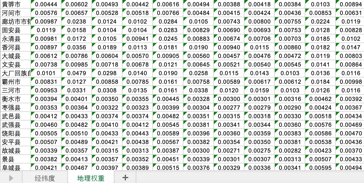 中国全国各省城市地级市县级市市辖区地理距离空间权重矩阵经纬度经济空间权重2020