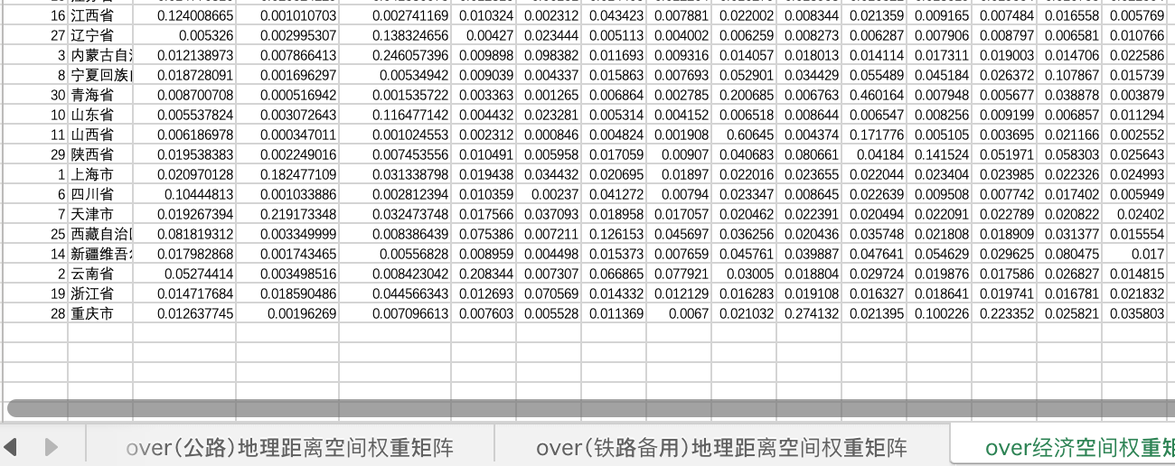 (铁路备用)地理距离空间权重矩阵、经济空间权重矩阵
