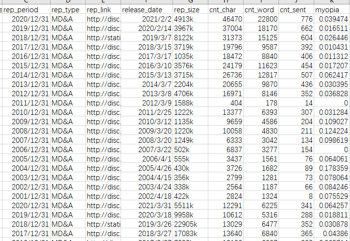数据说明:证券代码、证券简称、报告期间、报告类型、报告链接、发布日期、报告大小、总字数、总词数、总句数、管理者短视主义指标
