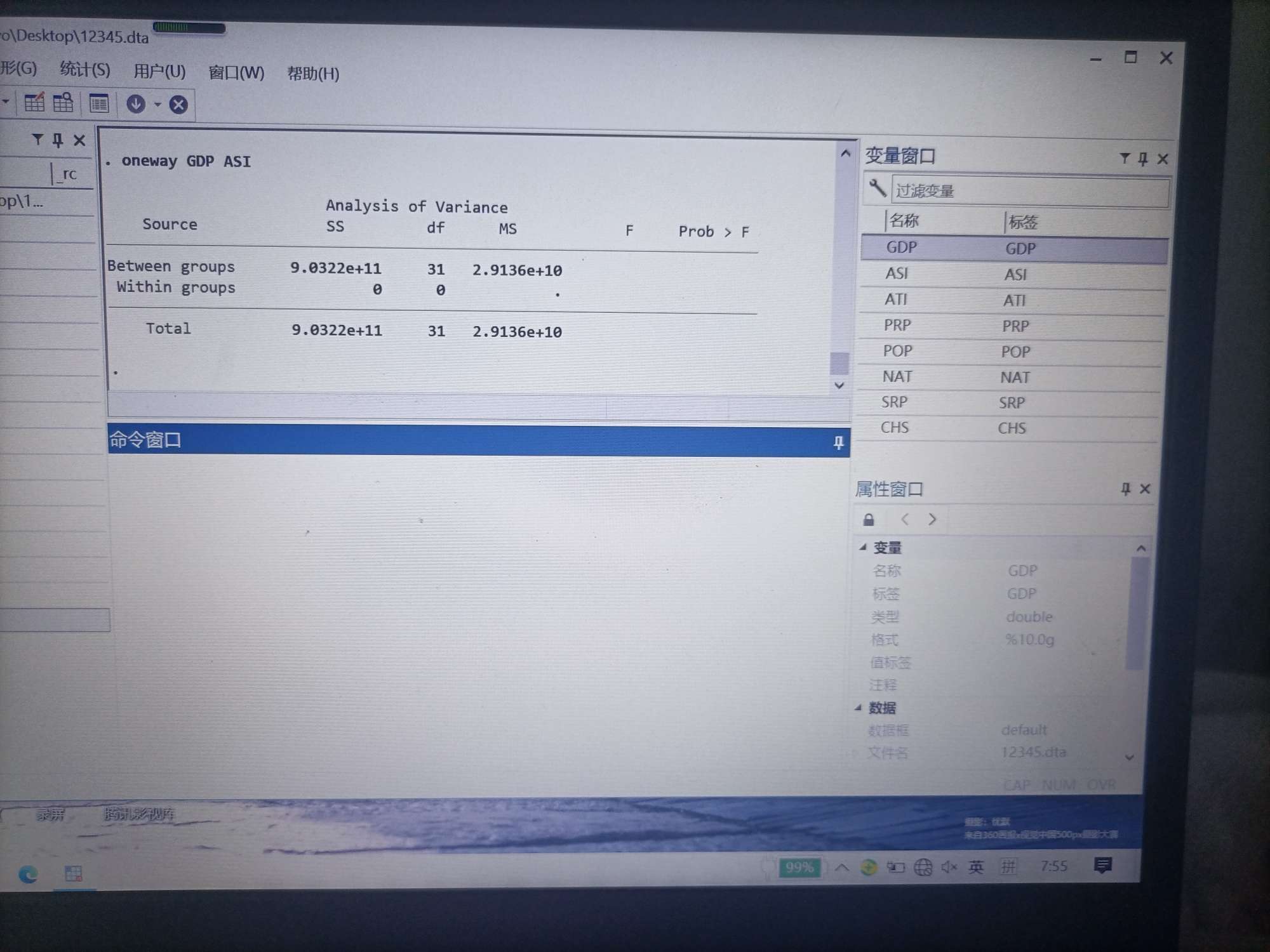 oneway 单变量方差分析结果没有within group