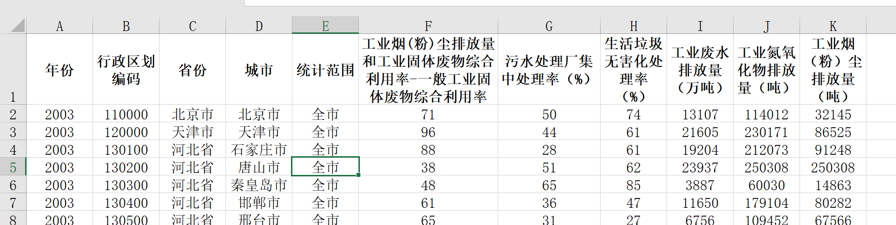 地级市污染(废水、烟尘排放量、固废、垃圾处理等)2003-2019年