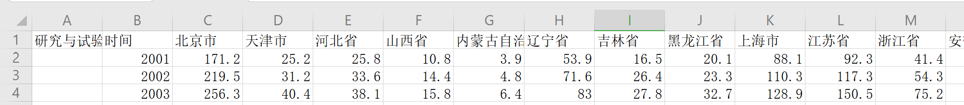 各省研究与试验发展经费支出(亿元)2001-2020