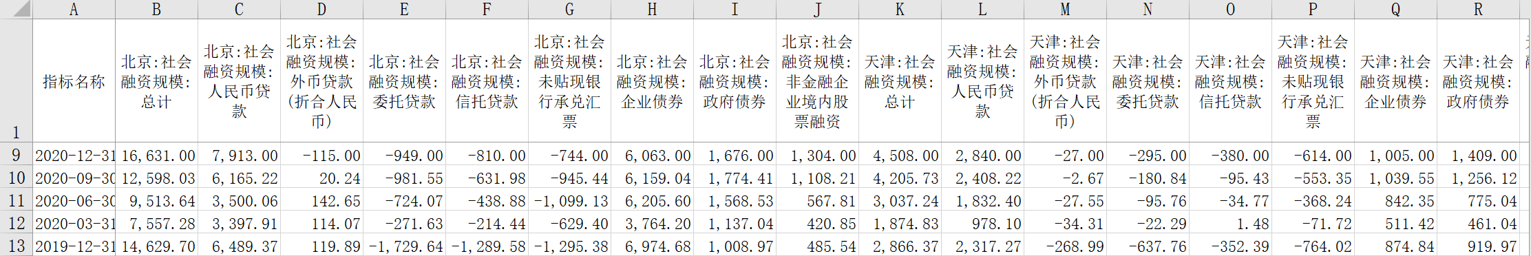 各省市社会融资规模-增量(总额及8类明细)2013-2021年季度数据--增量.xlsx