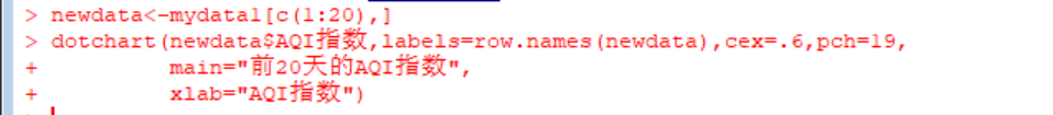 小白求助:根据数据的前20行的AQI指数绘制点图,标签是日期