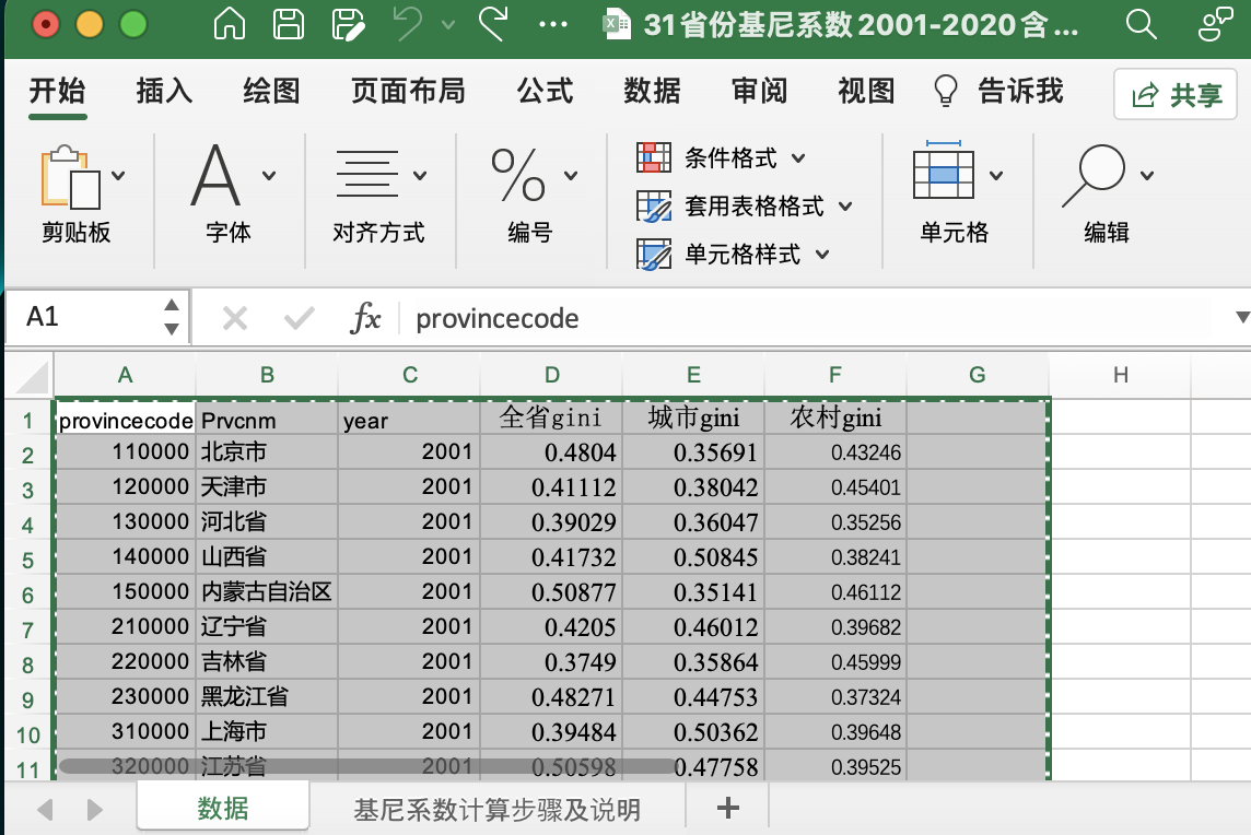 31省份基尼系数2001-2020含Excel计算方法.xlsx