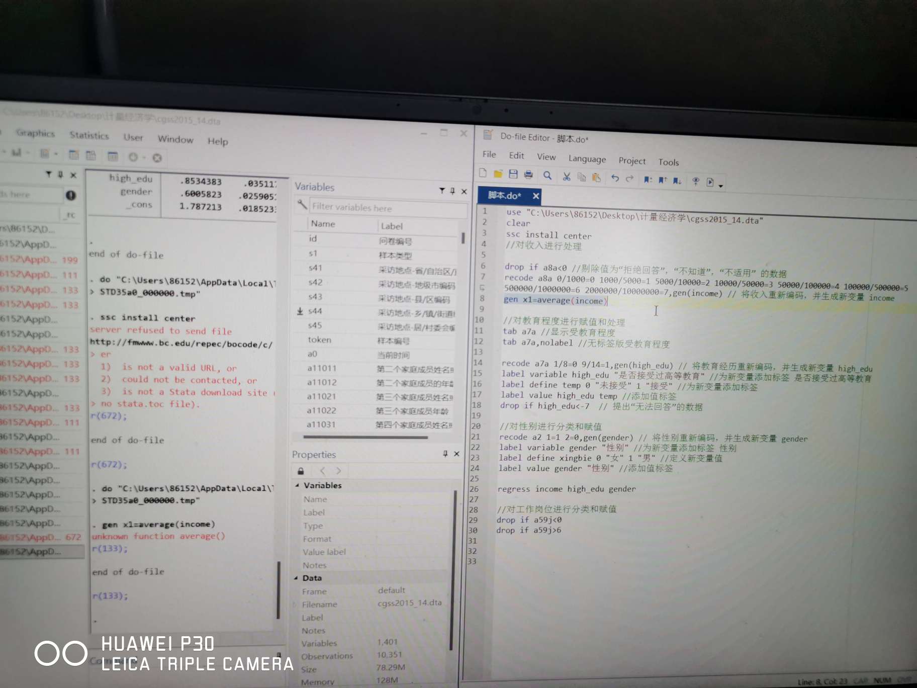 需要用stata求一下收入的均值和最值,但是stata显示无法识别average命令,求大佬解答